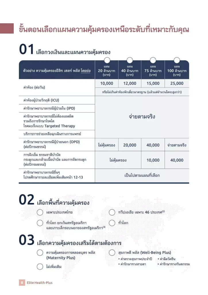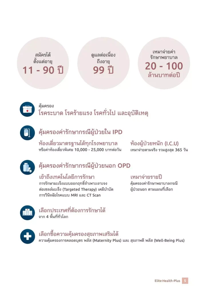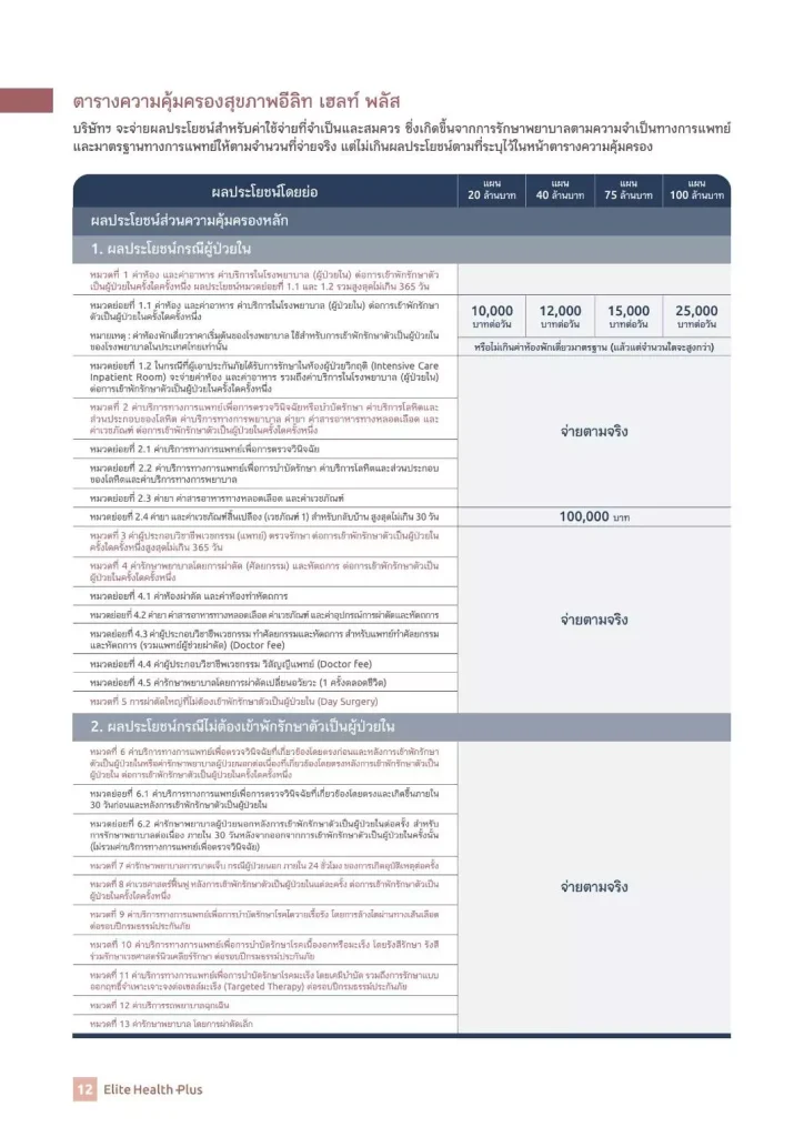 1. ประกันสุขภาพเหมาจ่ายอีลิทเฮลท์พลัส Elite Health Plus