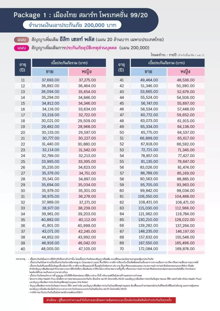 ตัวอย่างเบี้ยประกันสุขภาพอีลิทเฮลท์พลัส