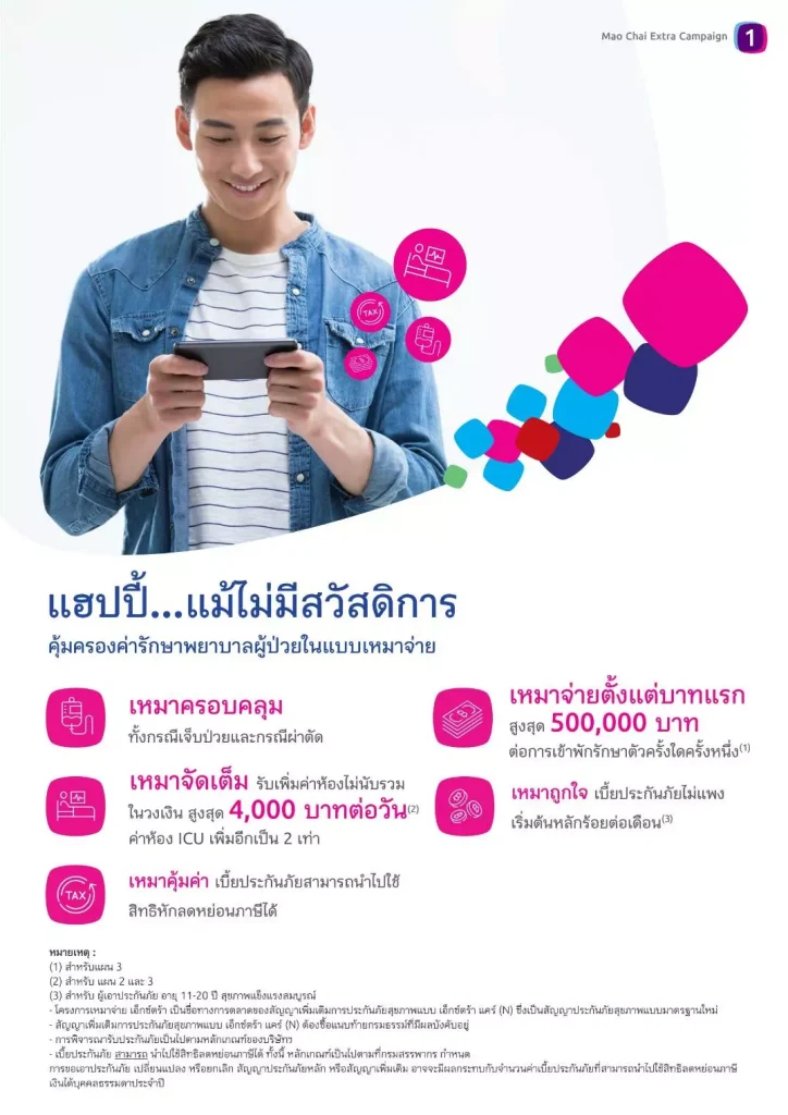 3. ประกันสุขภาพเหมาจ่ายเอ็กซตร้า MAOJAI EXTRA