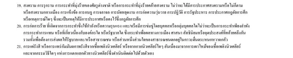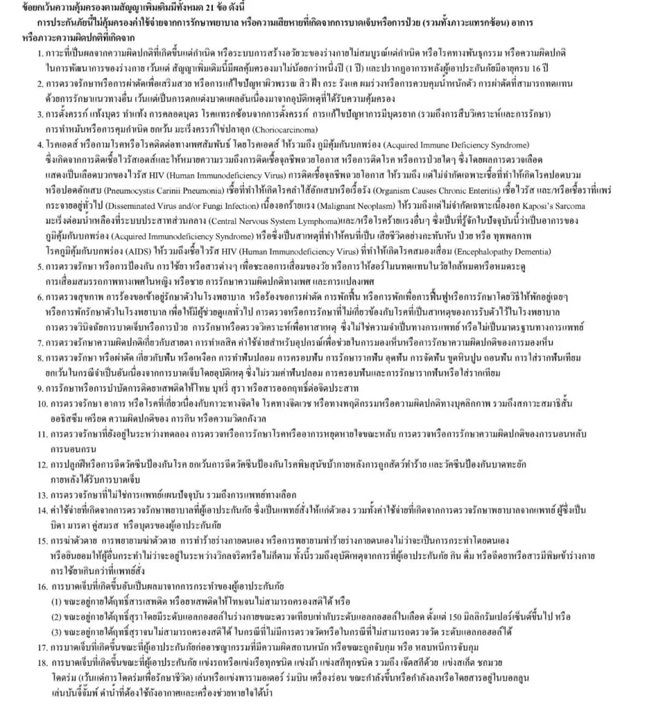 1. ข้อยกเว้นประกันสุขภาพ 21 ข้อ มีดังนี้