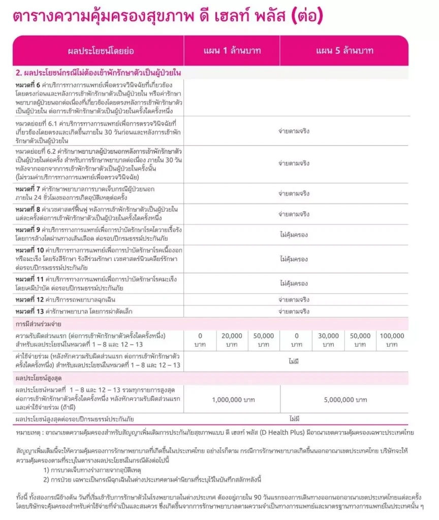 2. ประกันสุขภาพเหมาจ่ายดีเฮลท์พลัส Dhealth Plus