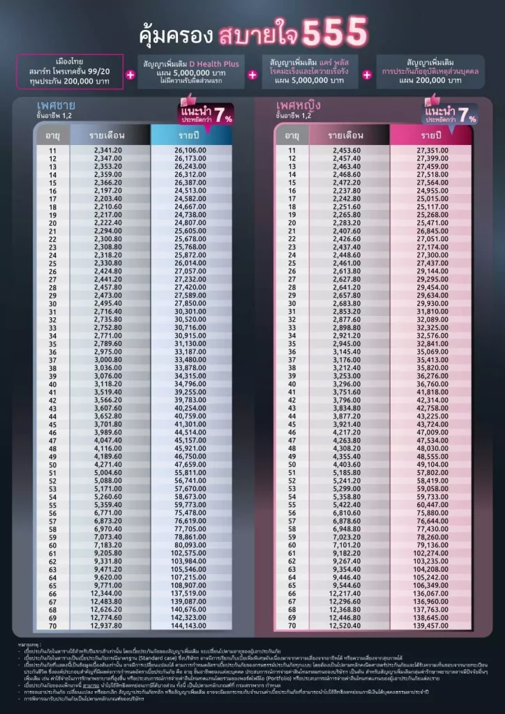 ตัวอย่างเบี้ยประกันดีเฮลท์พลัส + แคร์พลัสมะเร็งไตวาย